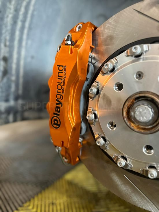 18吋框 Playground品牌前鍛造大六+兩片式全浮動345mm碟盤+後電子式手煞車專用對應鍛造中六活塞+兩片式345mm碟盤